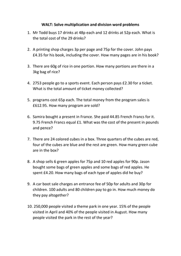 Multiplication And Division Word Problems Year 5 - Word Problems Worksheets Dynamically Created Word Problems / Multiplication worksheet generator (campbell airlie) simple multiplication problems (c.. Boost your child's time sense with a lesson in time conversion. This is the introductory video to the lesson titled multiplication, division and word problems on money in year 5 maths. Twinkl » 2014 national curriculum resources » maths. In year 3, they will be based on three objectives: Explore more than 10,000 'multiplication and division word problems year 5' resources for teachers, parents and pupils as well as related resources on 'multiplication and division word problems'